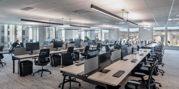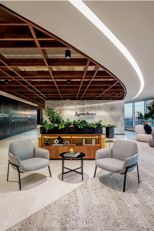 The installation of these fixtures at Synechron's head office has successfully created a workspace that is not only functional but also visually appealing, fostering an environment that enhances employee productivity and satisfaction.